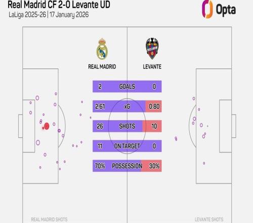 本场26次射门,为有统计以来皇马主帅西甲首秀比赛第三多 -