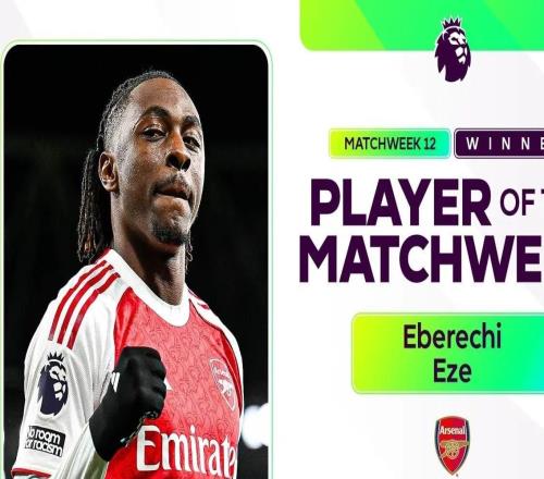 官方:北伦敦德比戴帽的埃泽当选英超第12轮最佳球员 -